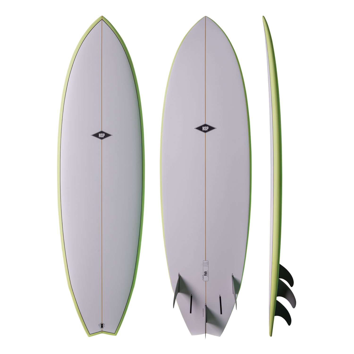 - Concave bottom creates a fast water transition through to the tail, providing balance and control in a wide range of conditions. Constructed in NSP’s high-performance Protech technology with a 36g molded Secure-cell EPS core with custom wet lamination.The tint lamination process provides each board with its own unique, artsy and custom-like finish. A visually appealing board!The NSP Funboard is the clear “next-step” board for surfers looking to downsize, and an overall great board to have for all kinds of conditions.